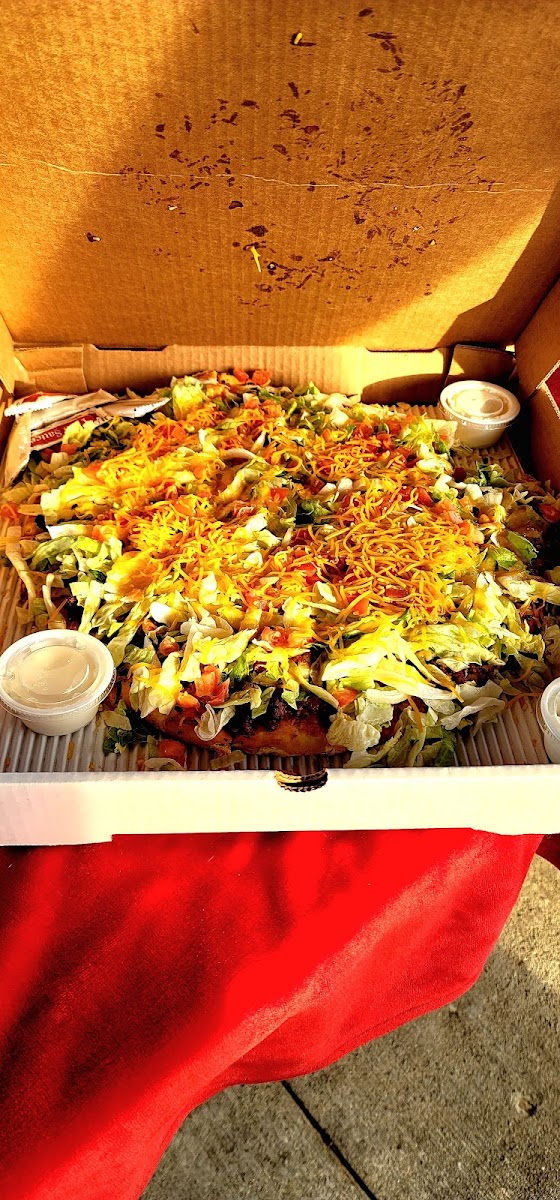 We got two pizzas and I tried the chicken ranch wrap and I was impressed with the flavor of the breaded chicken and they have some of the best ranch I've had. I will definitely be getting that wrap again. I can't wait to try the taco pizza.